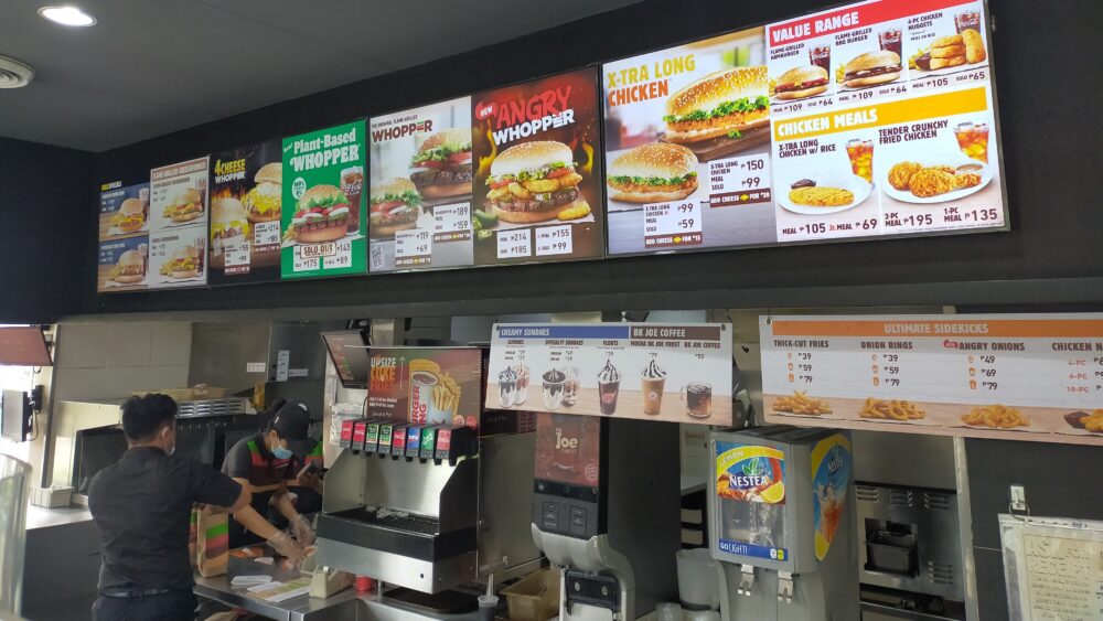 日本のワッパーセットが790円、フィリピンでは約400円なので、フィリピンは激安などと言われがちですが、給料や物価を考えるとフィリピン人にとってはかなり割高です。