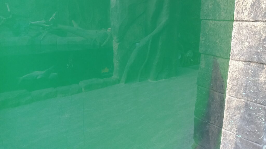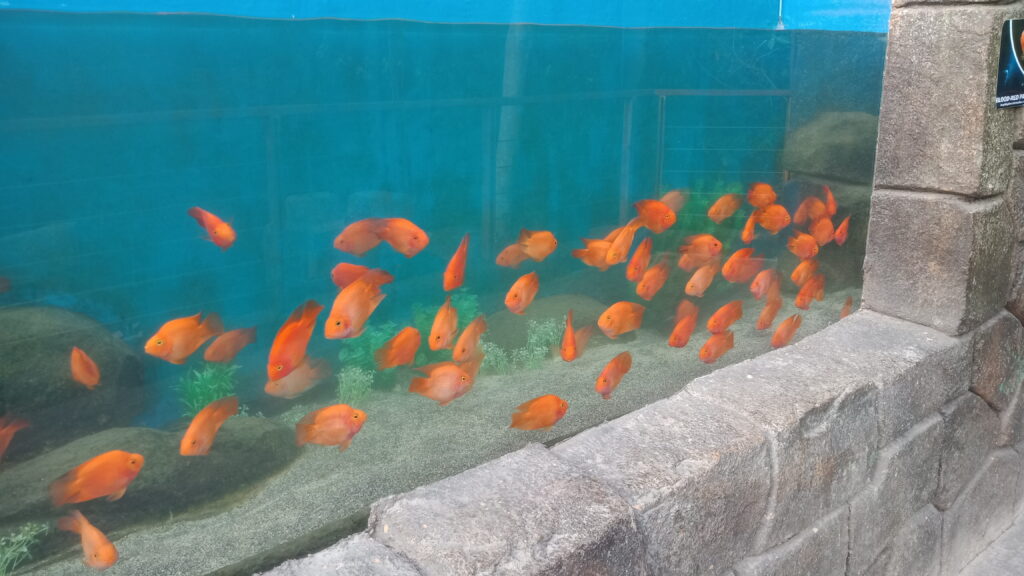 入口を抜けると、まずは野外エリアからスタートです。ジャングルを意識しているそうで、淡水魚のエリアですが、再現しすぎで水は汚いです。