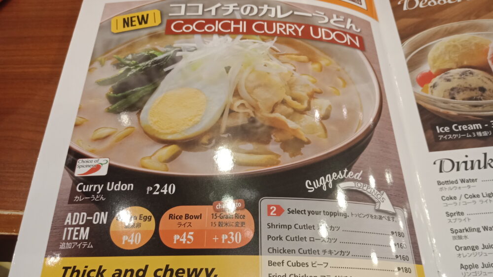 セブ島にもCoCo壱番屋(ココイチ)があります。2018年9月にできました。
