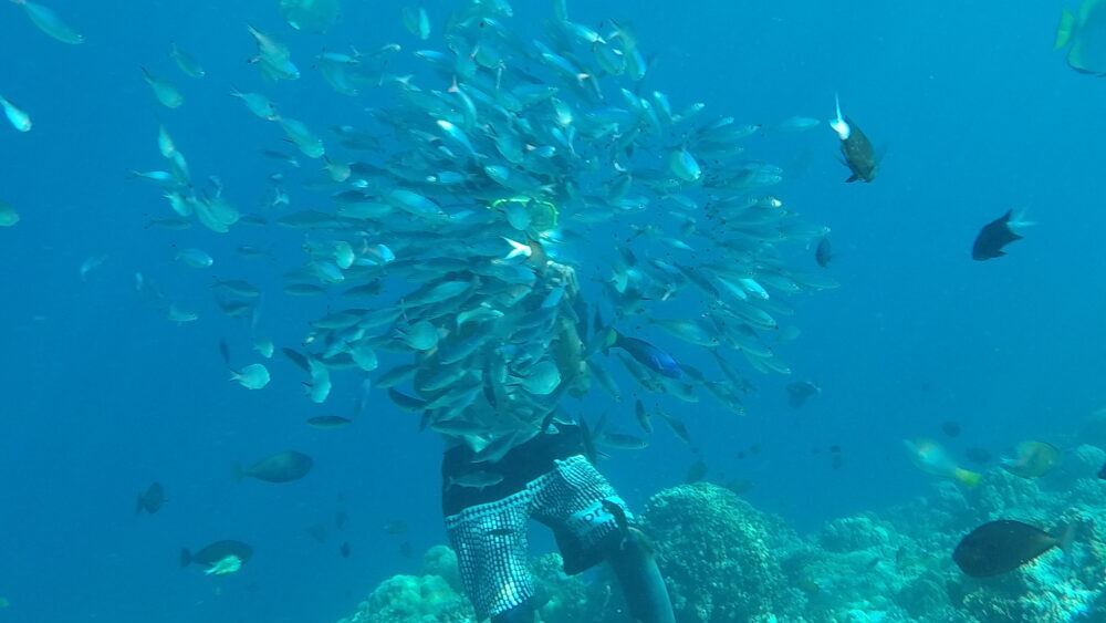 ヒルトゥガン島の海洋保護区にいる間に、マリンアクティビティをすることもできます。ダイビングショップなどへの申し込みが必要ですが、僕がガイドをする時はいつも頼んでいます。