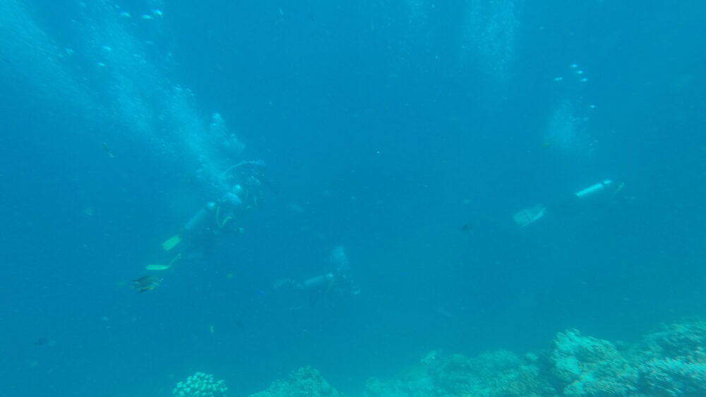 ダイビングをする人もいますが、あまり深くないので、素潜りで同じくらいのところまで行けるようになりました。