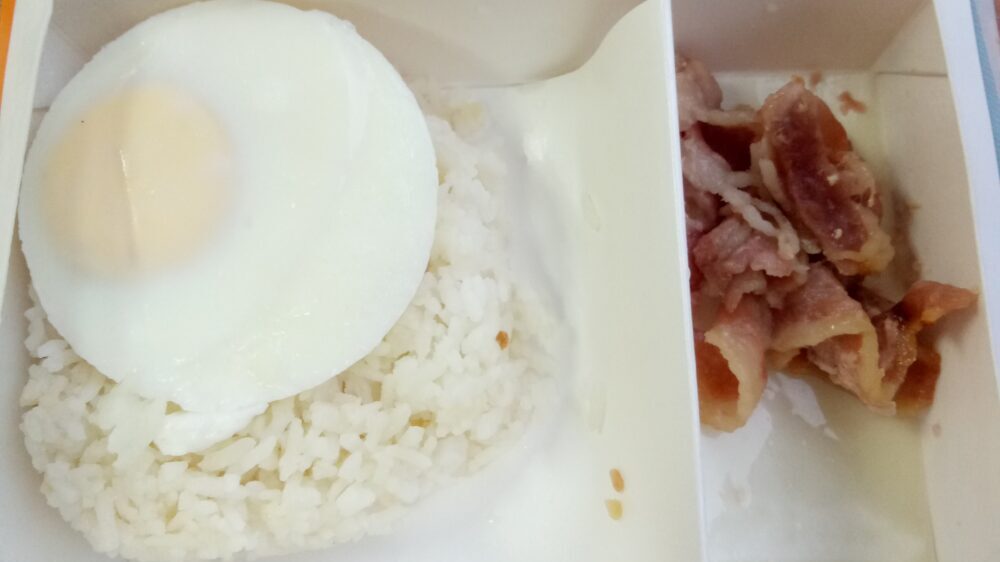 また、朝だけでなく夜も似たようなものを食べます。フィリピンの庶民の食事は基本的に大量のライスとおかず1~2品のことが多いです。