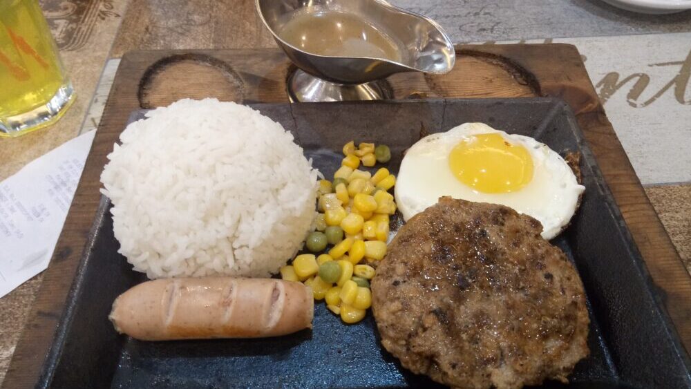 シログ(Silog)とは、ガーリックライス、目玉焼き+おかず1品の定食です。タガログ語ではガーリックライス(フライドライス、チャーハン)をシナンガグ(Sinangag)、卵をイトログ(Itlog)と言い、シログはこれらを組みあわせた言葉です。