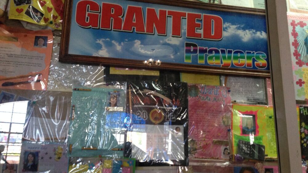 教会内には、実際に願いが叶った信者たちからの感謝の手紙などが展示されています。特に、もう使わなくなった松葉杖や車椅子がたくさんあるのが印象的でした。