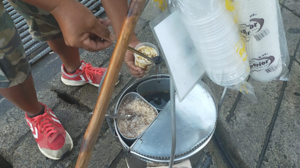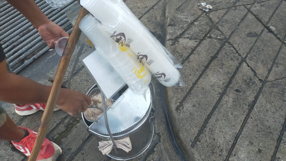 スルッと食べられて朝食にピッタリ。なのですが、フィリピン人は朝食をガッツリ食べる文化なので、朝食後にタホを食べます。特に通勤、通学中の人たちのおやつとして親しまれています。