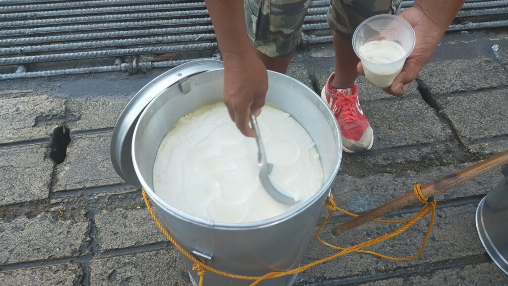 タホの店舗や屋台はありません。早朝、お兄さんが「タホー!」と言いながら売り歩きます。また、朝しか売っておらず、買えるかどうかは運です。