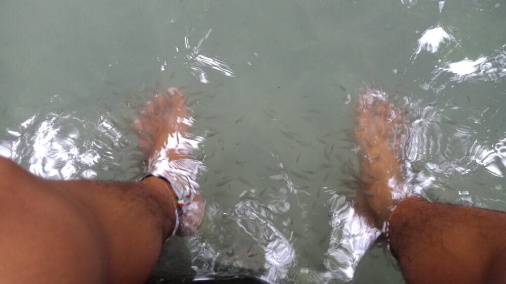 僕は年中ビーサンで足が汚いので、ドクターフィッシュがたくさん寄ってきます。